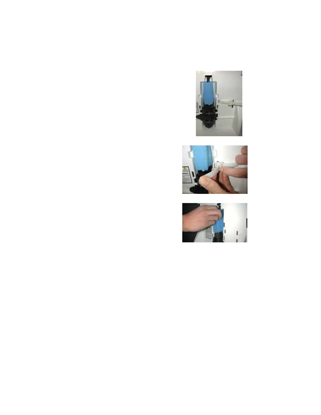 Locate the protective foam found at the UV lamp cable. Remove it (C).