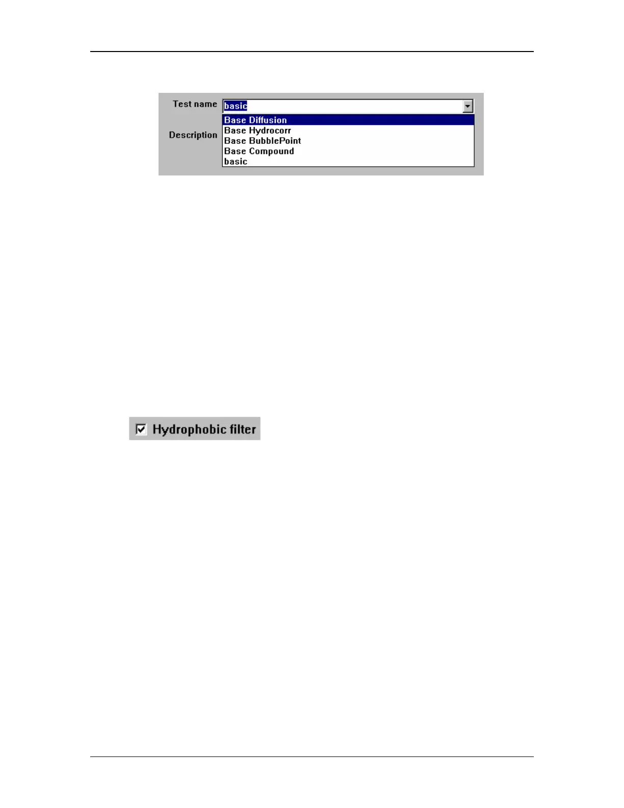 • the blank checkbox indicates that the filter is not hydrophobic