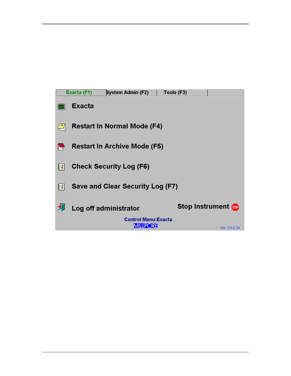 Figure 10: Control Menu Screen, Exacta Tab