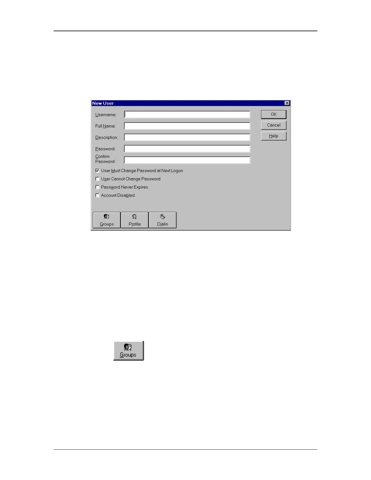Logon, User Cannot Change Password, Password Never Expires, and Account