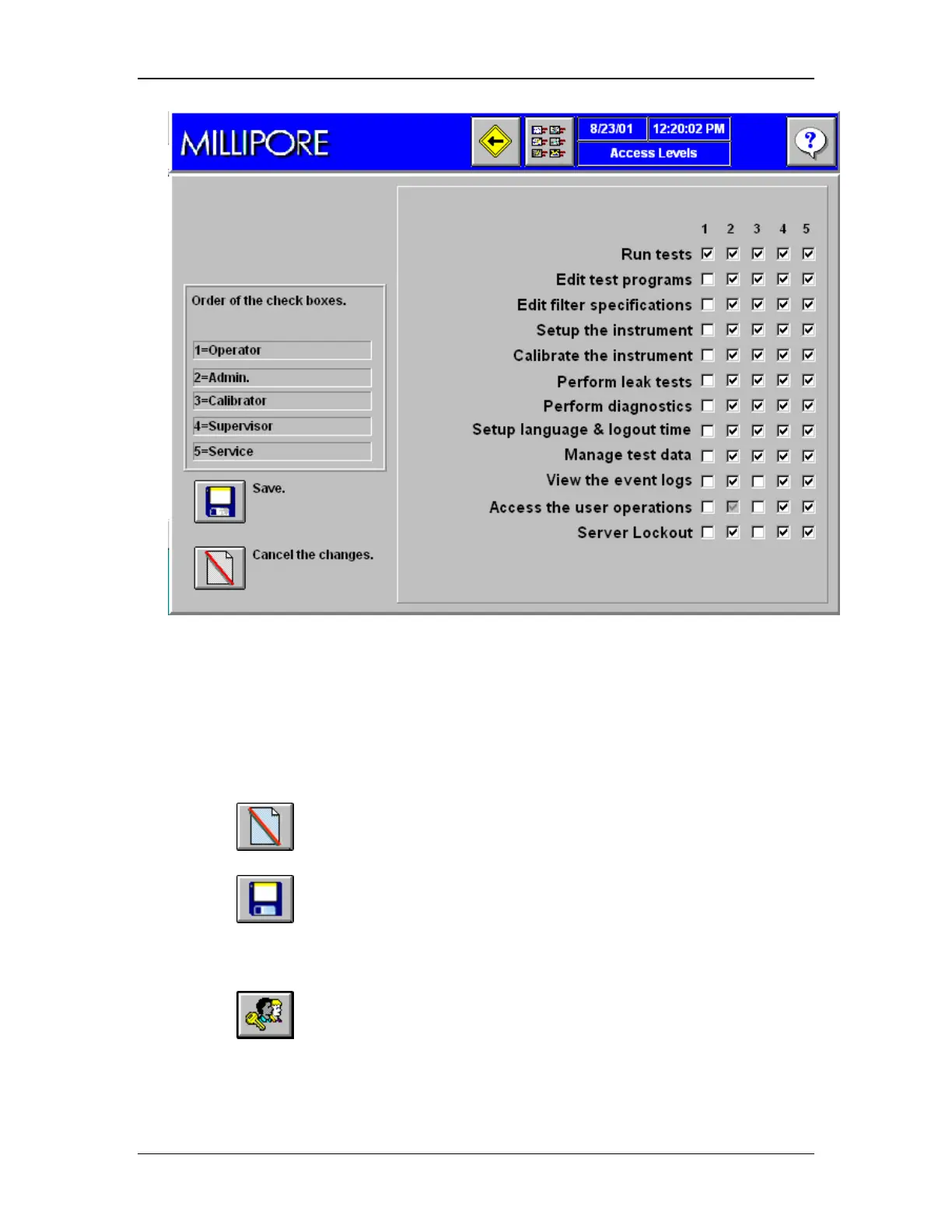 1. The numbers (1–5) at the top of each column correspond to a user category