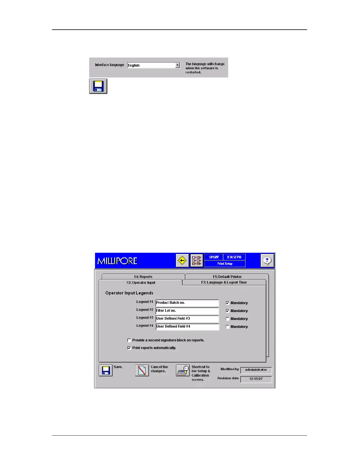 Figure 37: Print Setup Screen, Tab F2, Operator Input