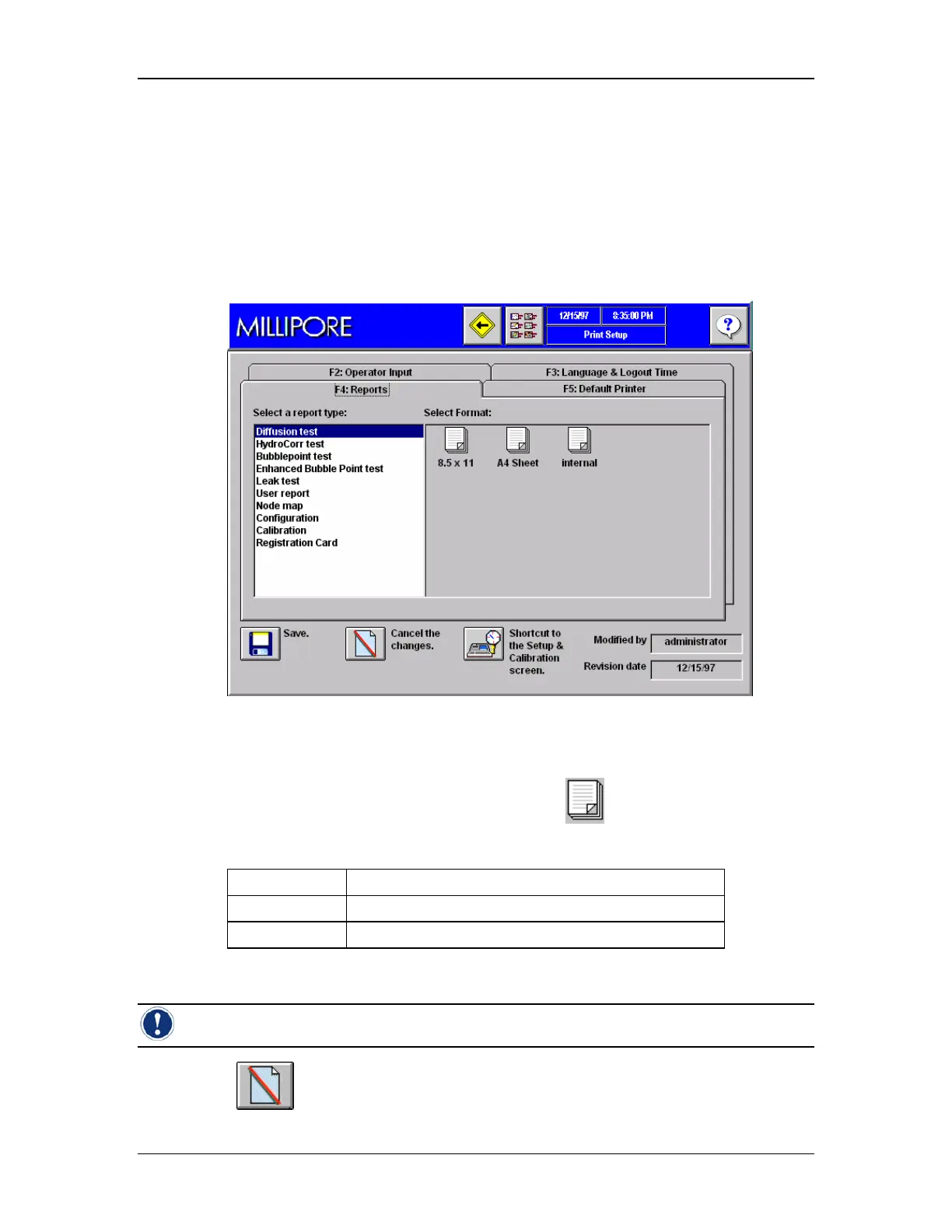 Figure 39: Print Setup Screen, Tab F4, Reports