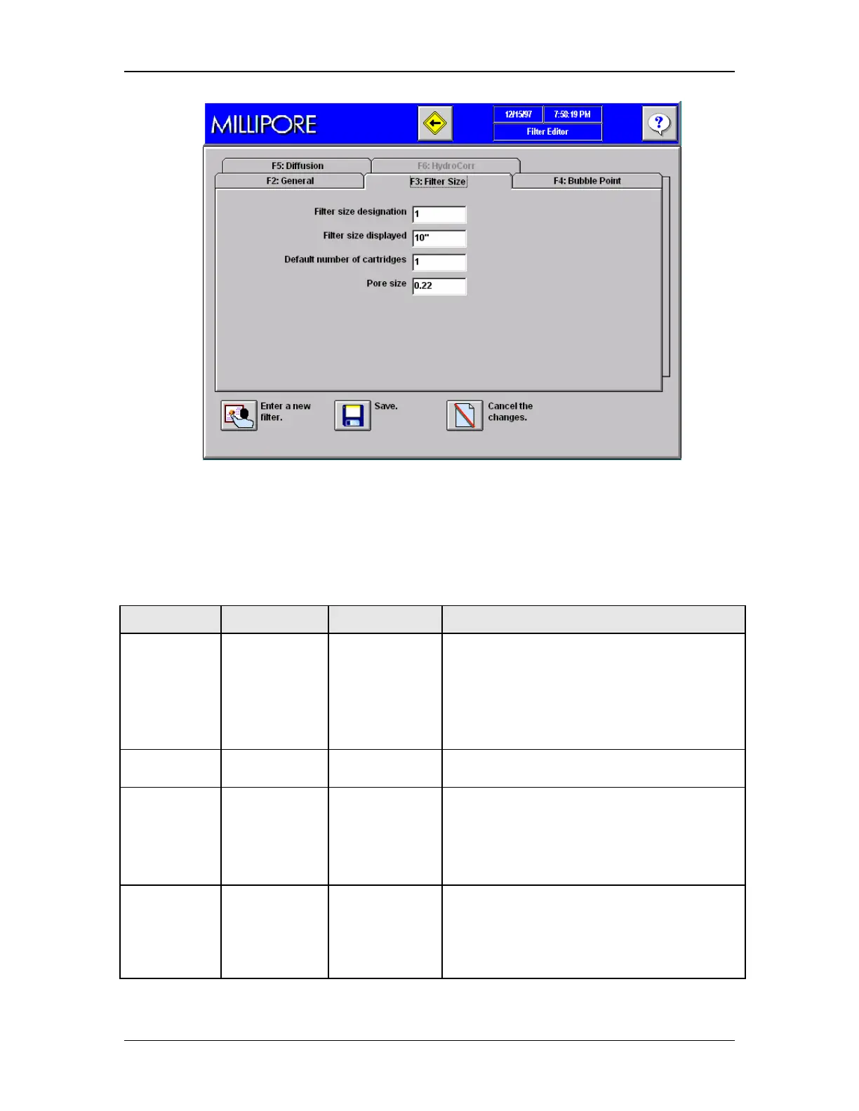 Figure 42: Filter Editor, Tab F3, Filter Size