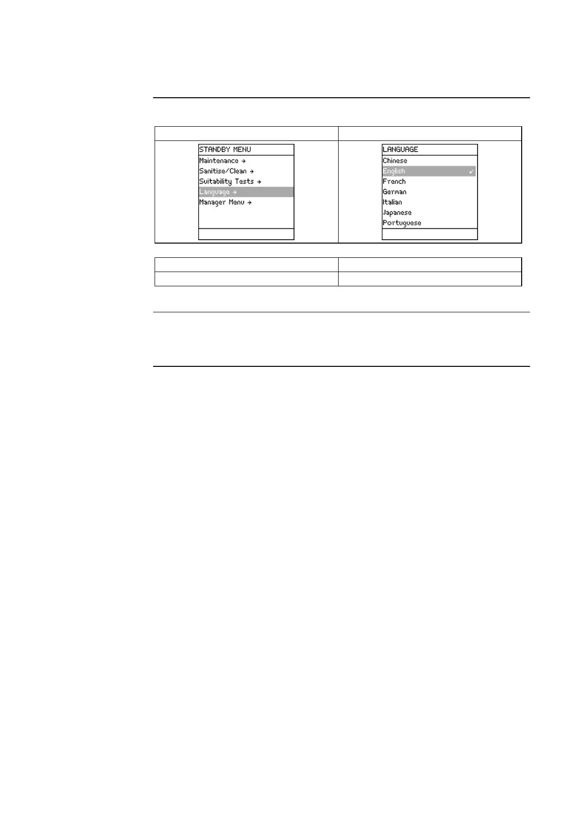 Description of Standby Menu, Continued