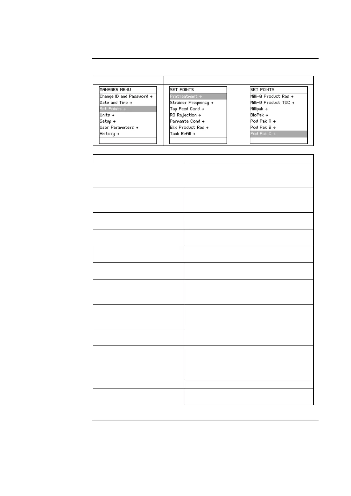 Milli-Q Product Res Change set point controlling the message