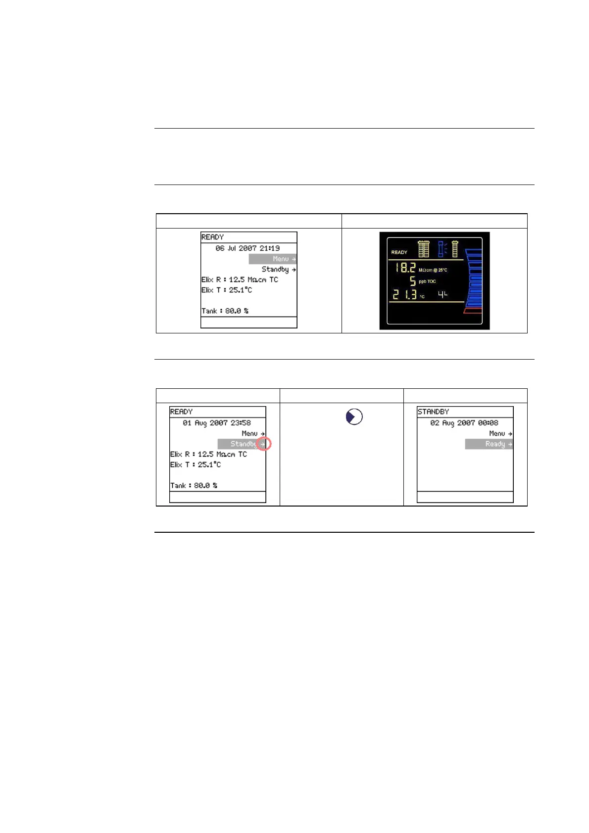 Millipore Milli-Q Integral 10 - Ready Mode and Menu