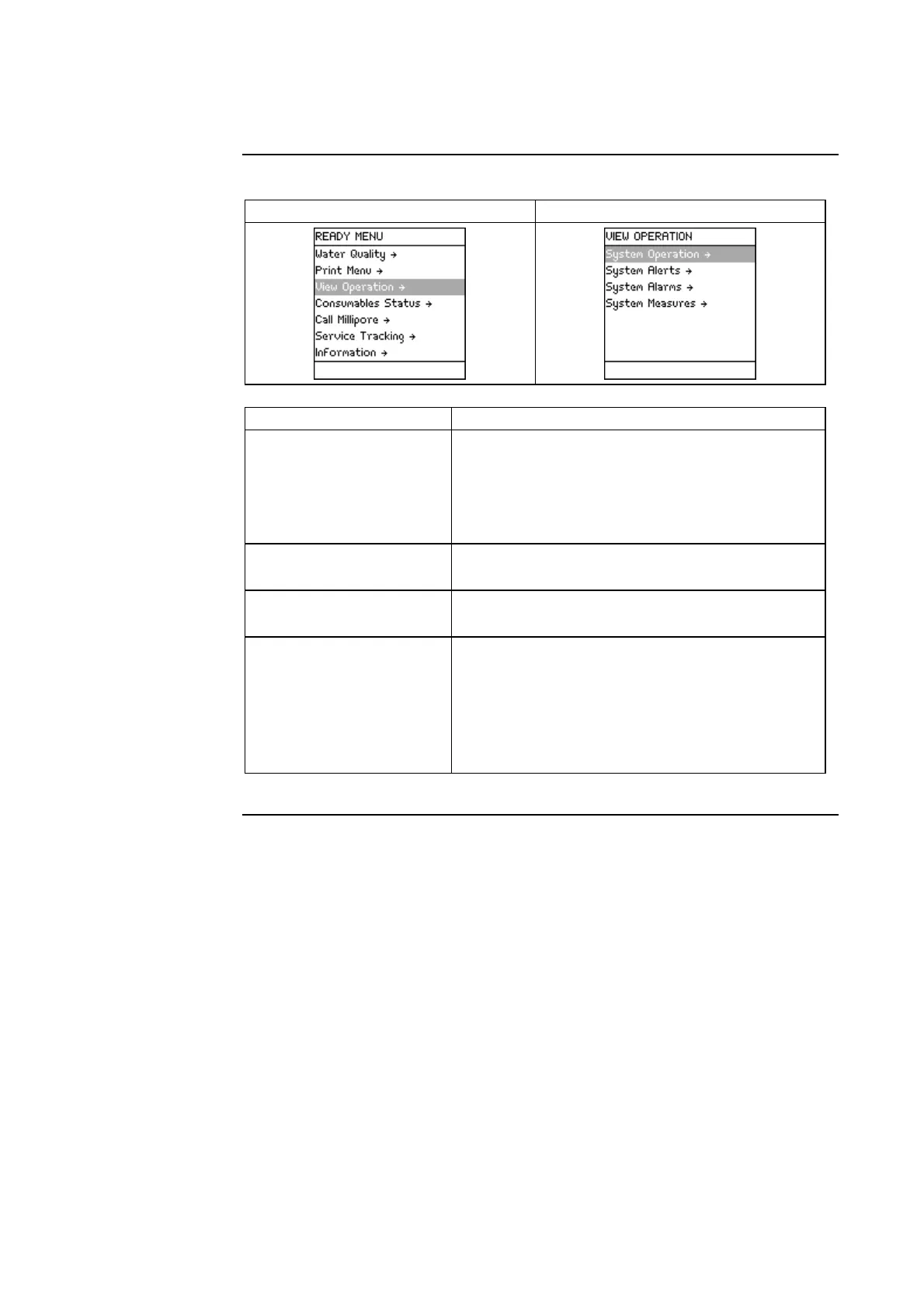 Description of Ready Menu, Continued