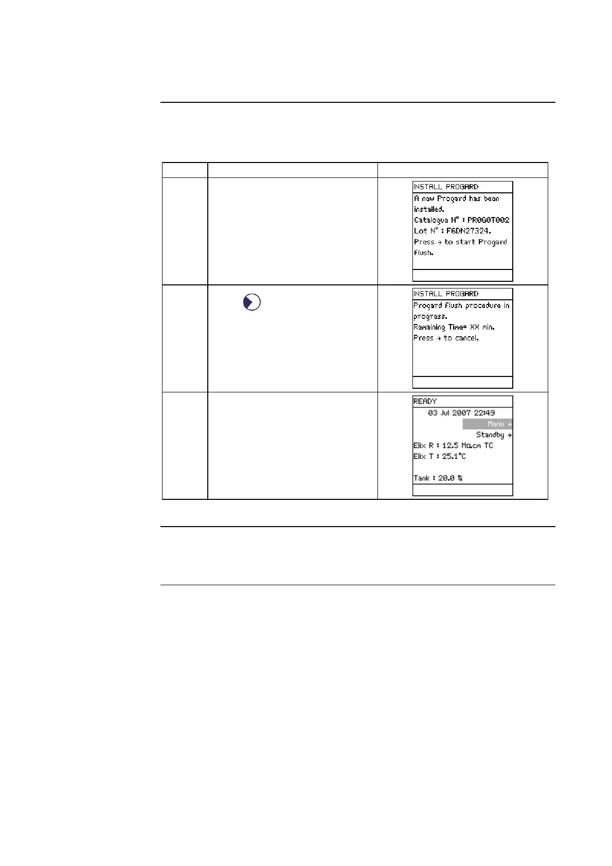 • The Progard Pack must be flushed out when it is newly installed.