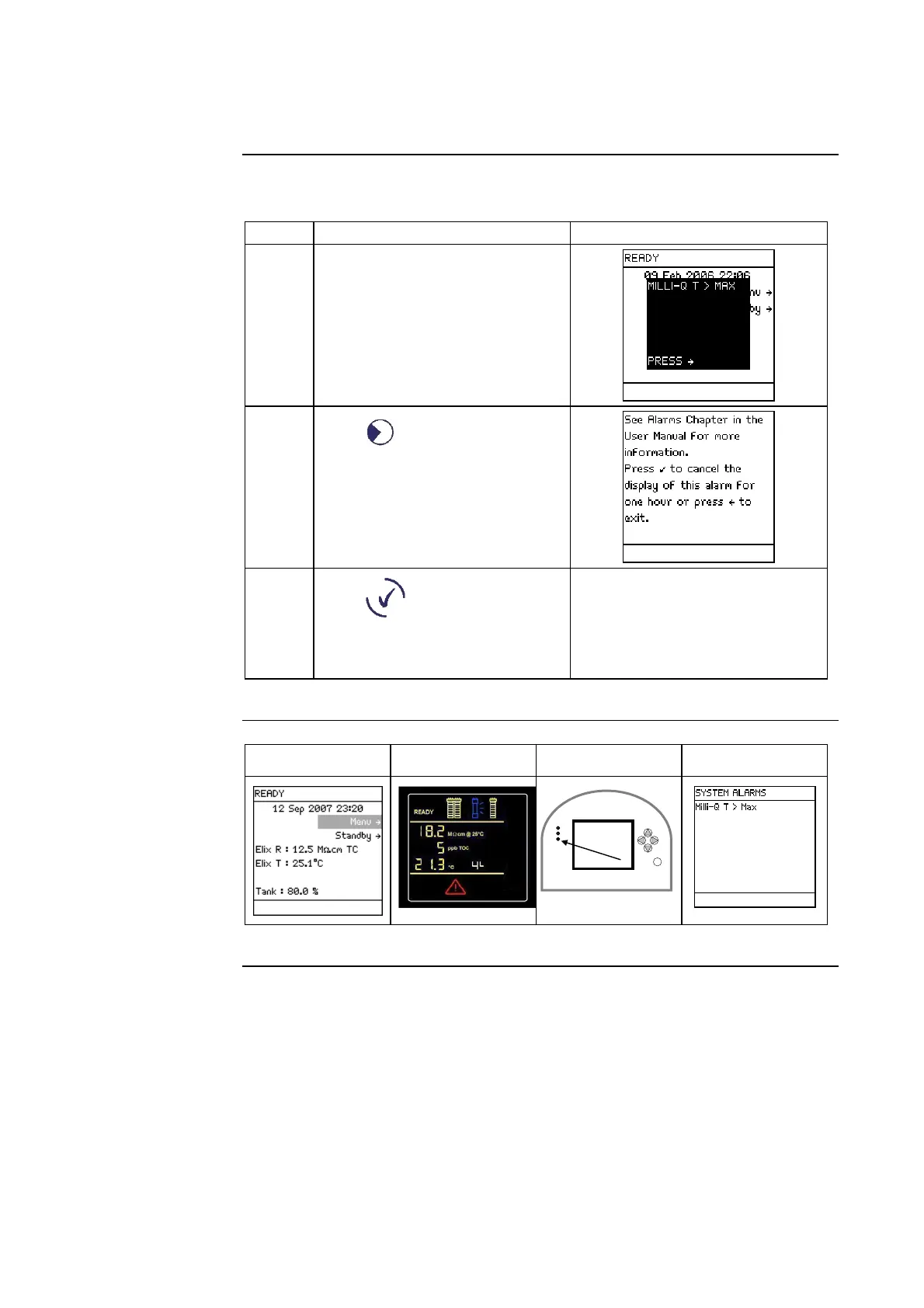 1 The Alarm message is shown