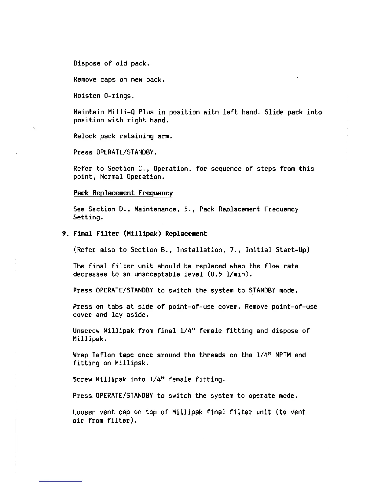 9. Final Filter (Millipak) Replacement