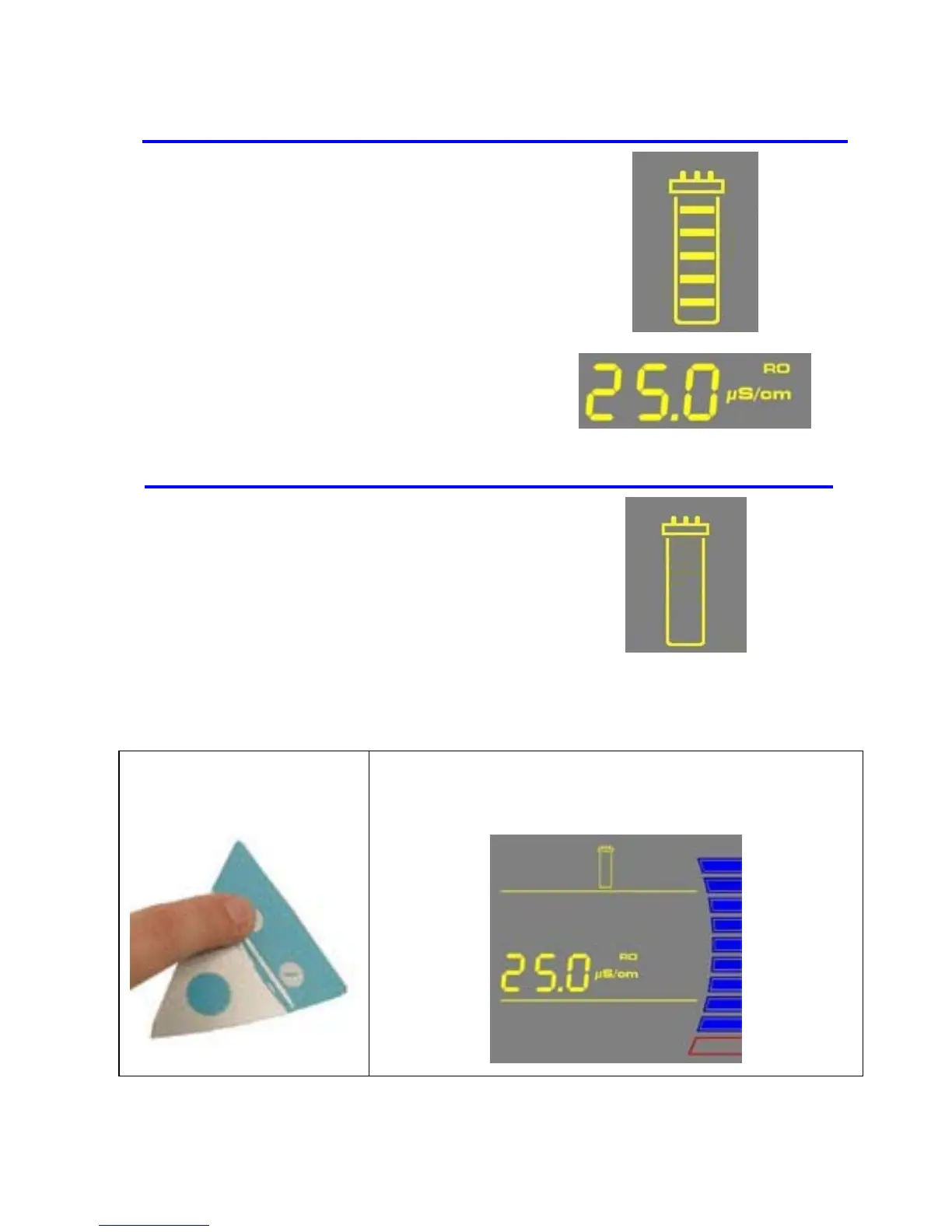 The Display will show the last RO Permeate Water conductivity value