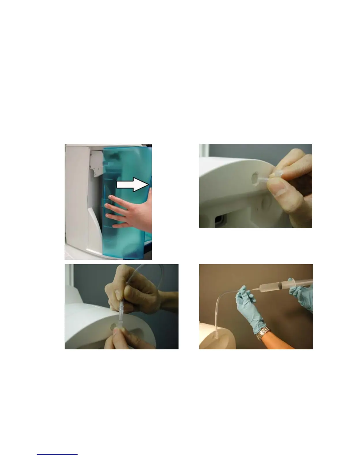 Close the front cover (G). The system will now go into FILLING TANK mode. Let the Tank Level