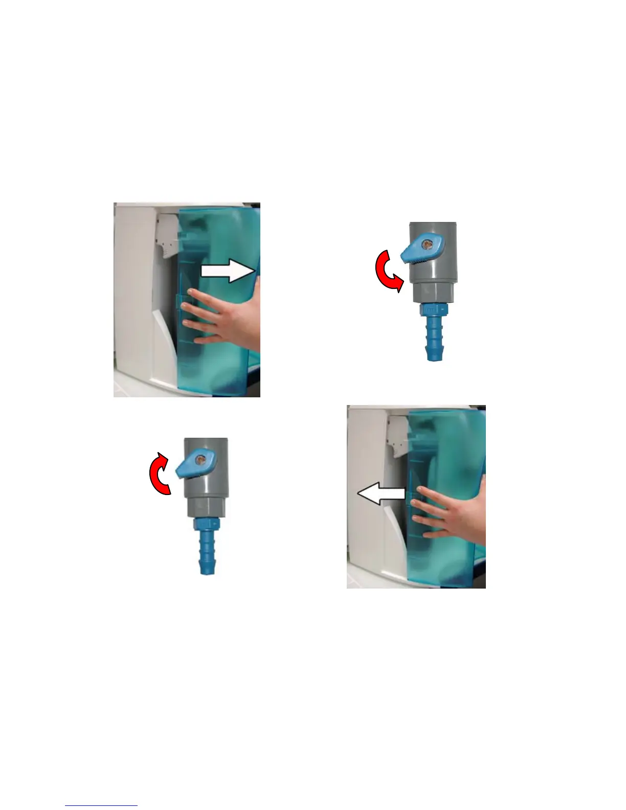 Check that the Tank Outlet Tubing is secured into the drain. Open the Tank Outlet Valve to drain all