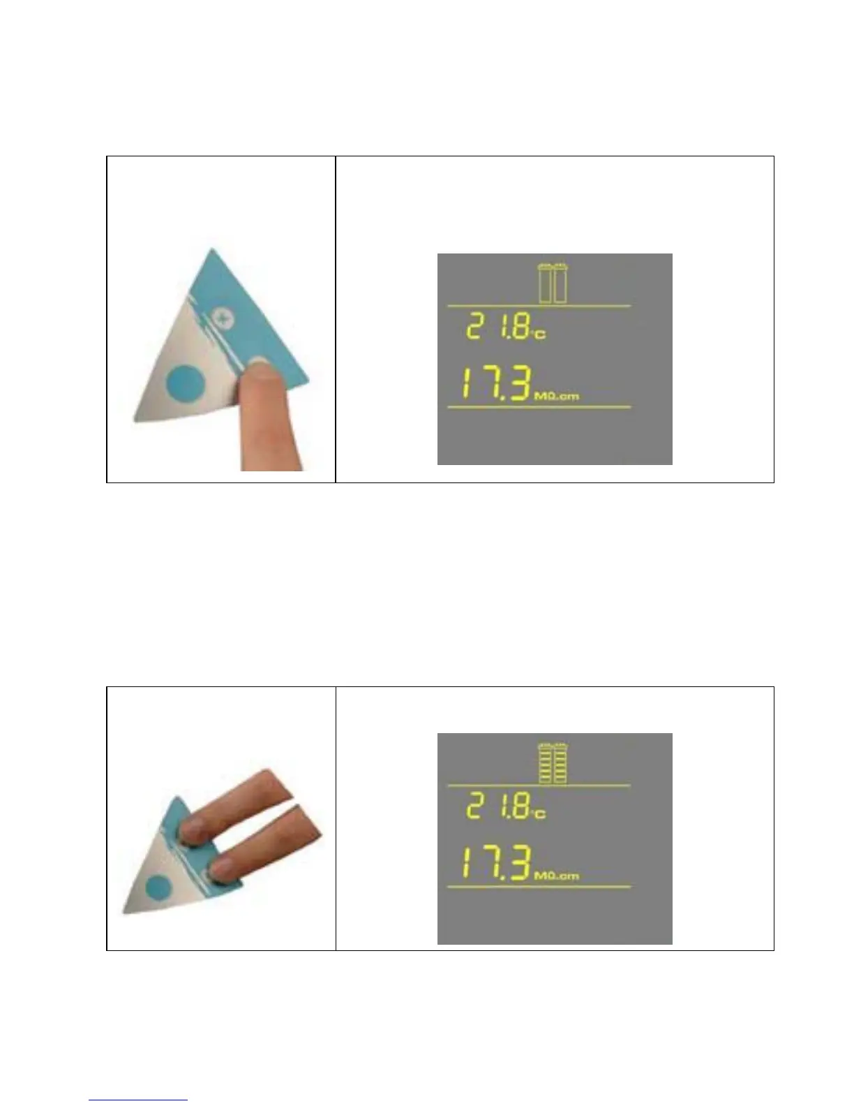 The Display will show the last Product resistivity and temperature