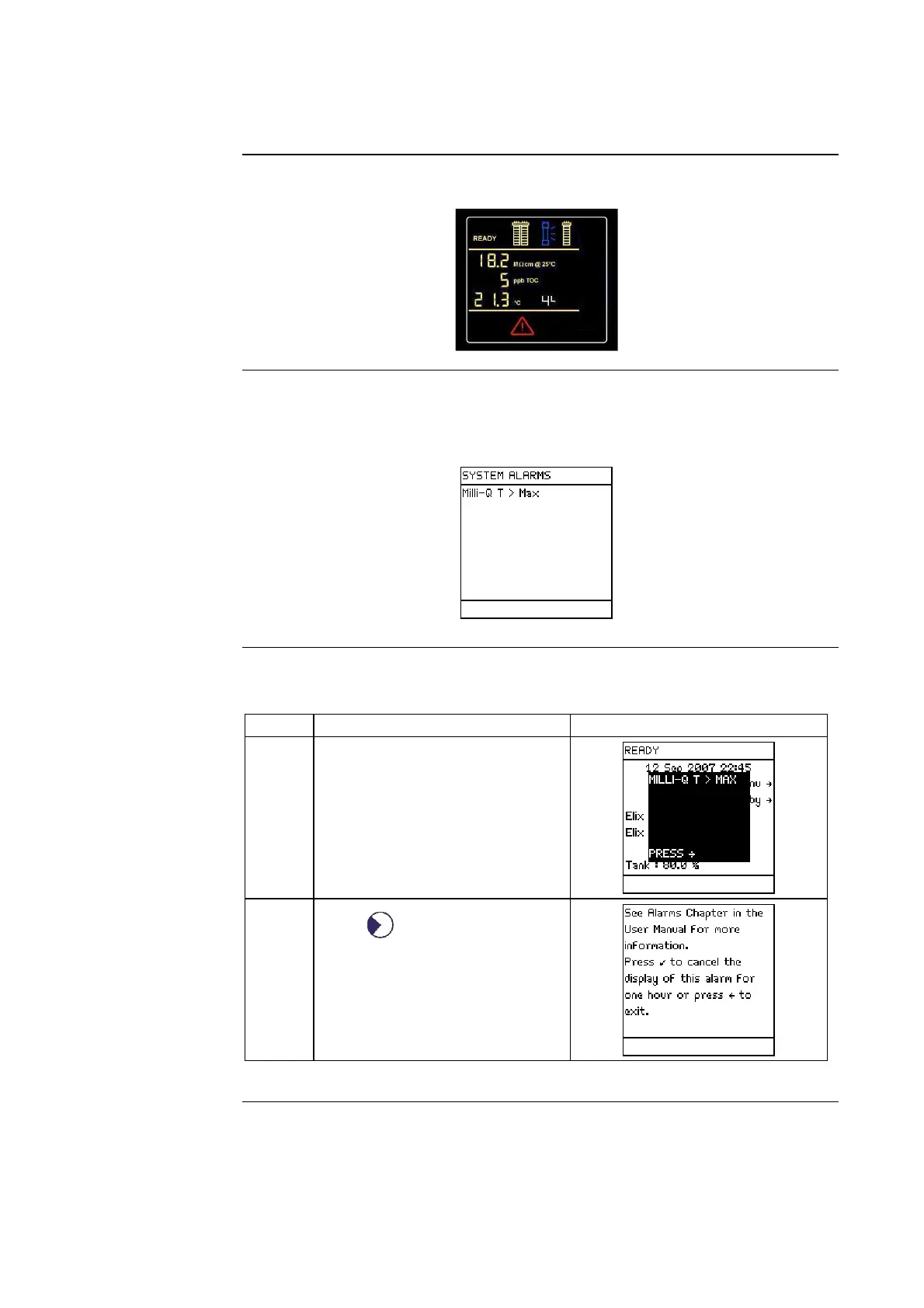 1 The Alarm message is shown