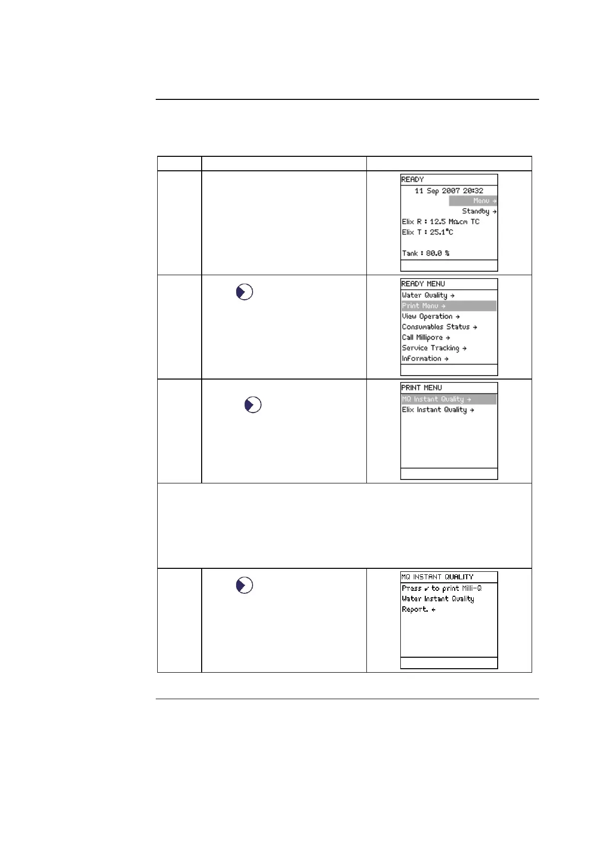 For an Elix Instant Quality Report, the Milli-Q System should be filling