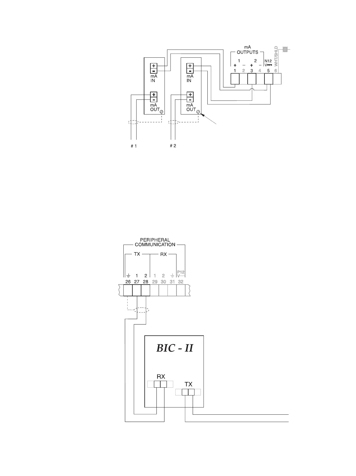 Connect the Milltronics BIC-II (if required) to the Peripheral Communications terminals as follows.