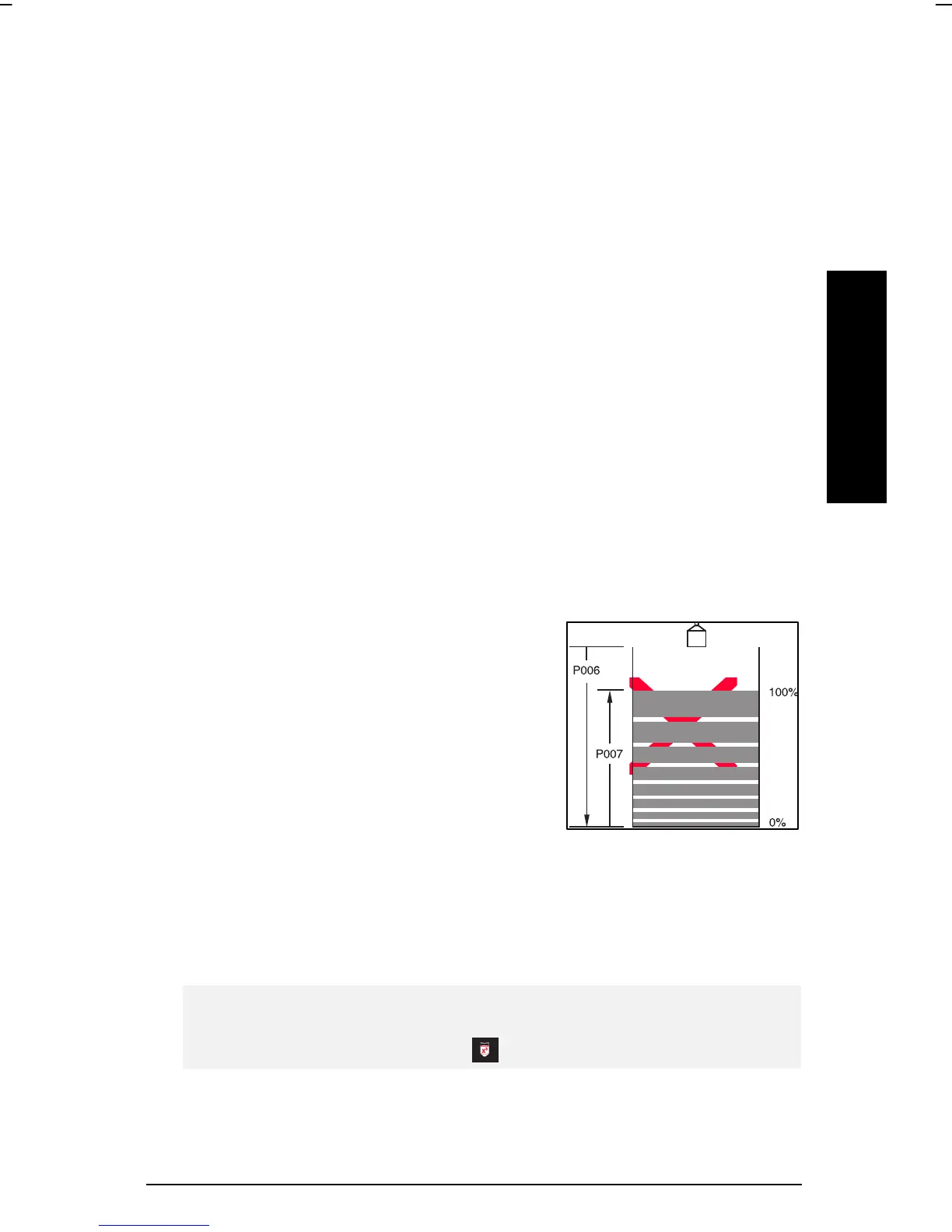 When Operation is "level" (P001 = 1), liquid (material) volume is calculated.