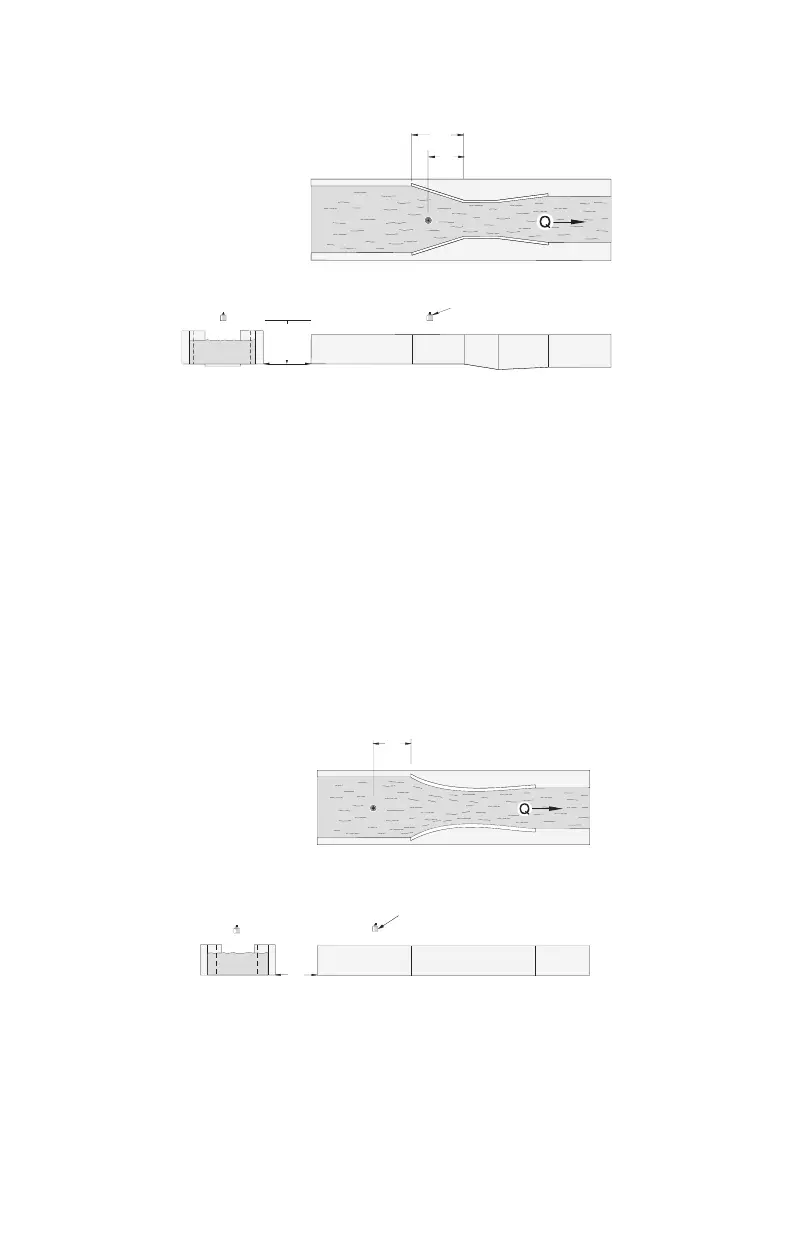 ( 6" ) upstream from the beginning of the converging section.