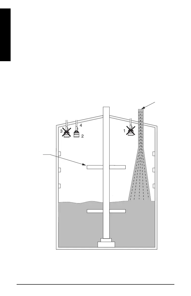 3. Transducer should be aimed away from wall projections.