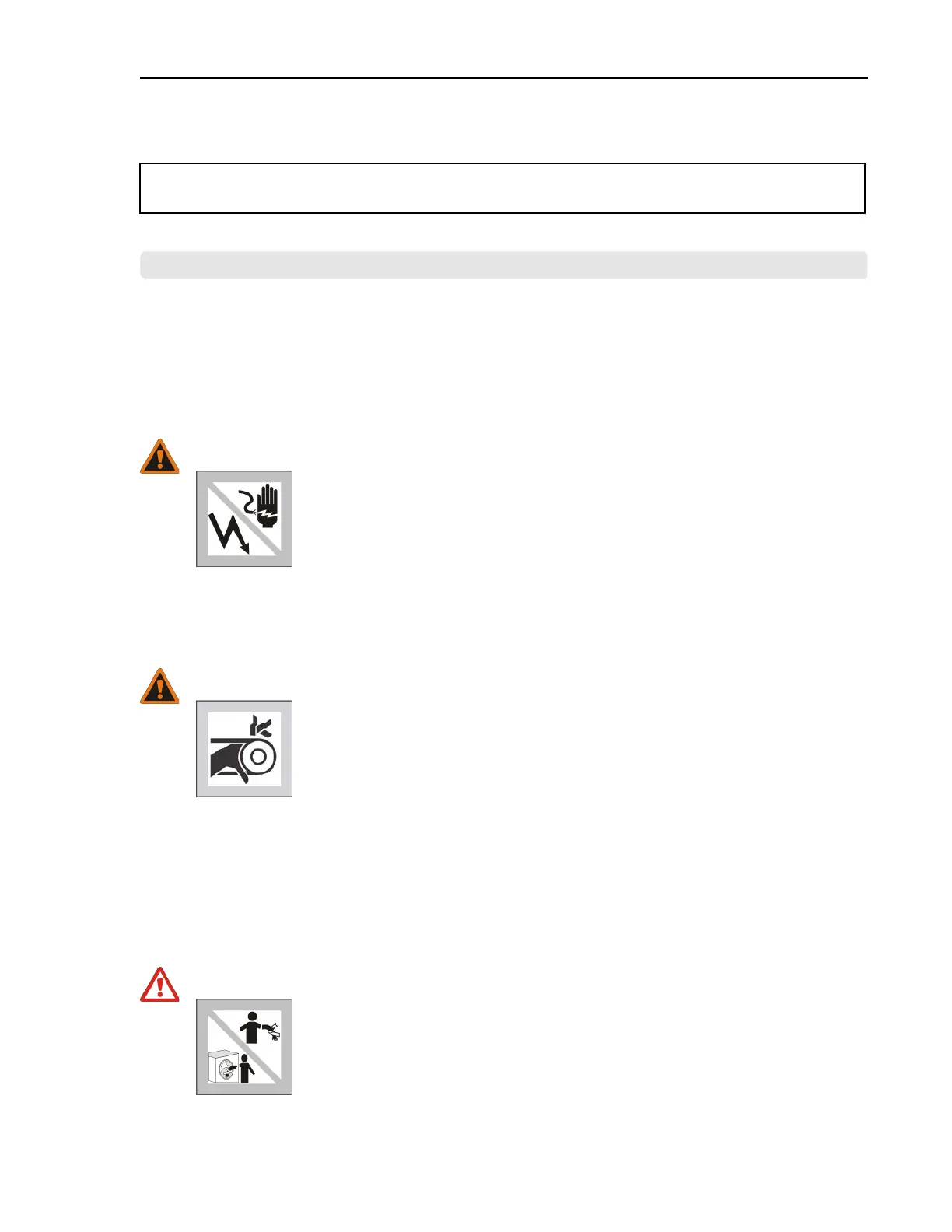 DANGER: Entangle and Sever Hazards — Contact with goods being processed can