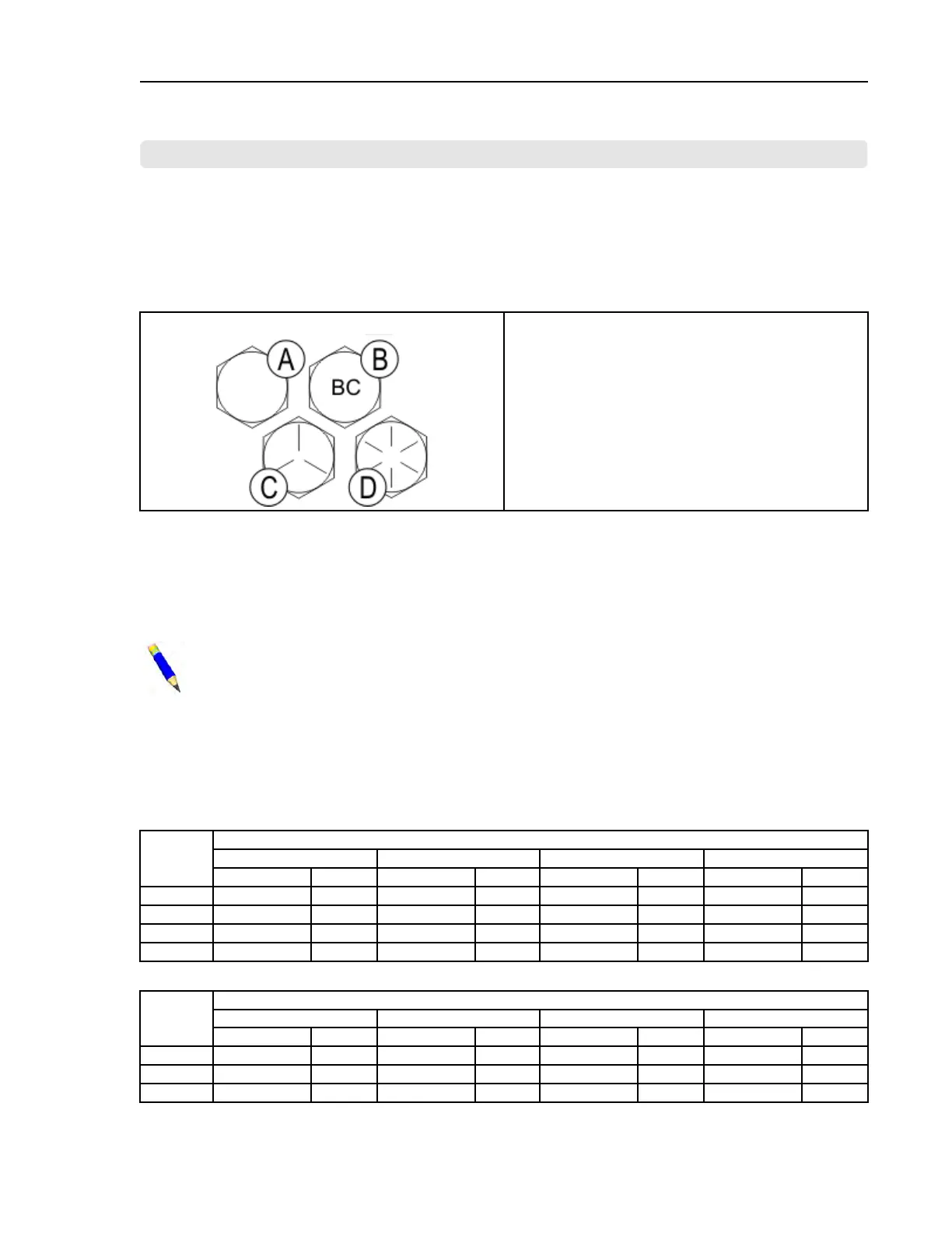 These tables give the standard dimension, grade, threadlocker, and torque requirements for fasten-