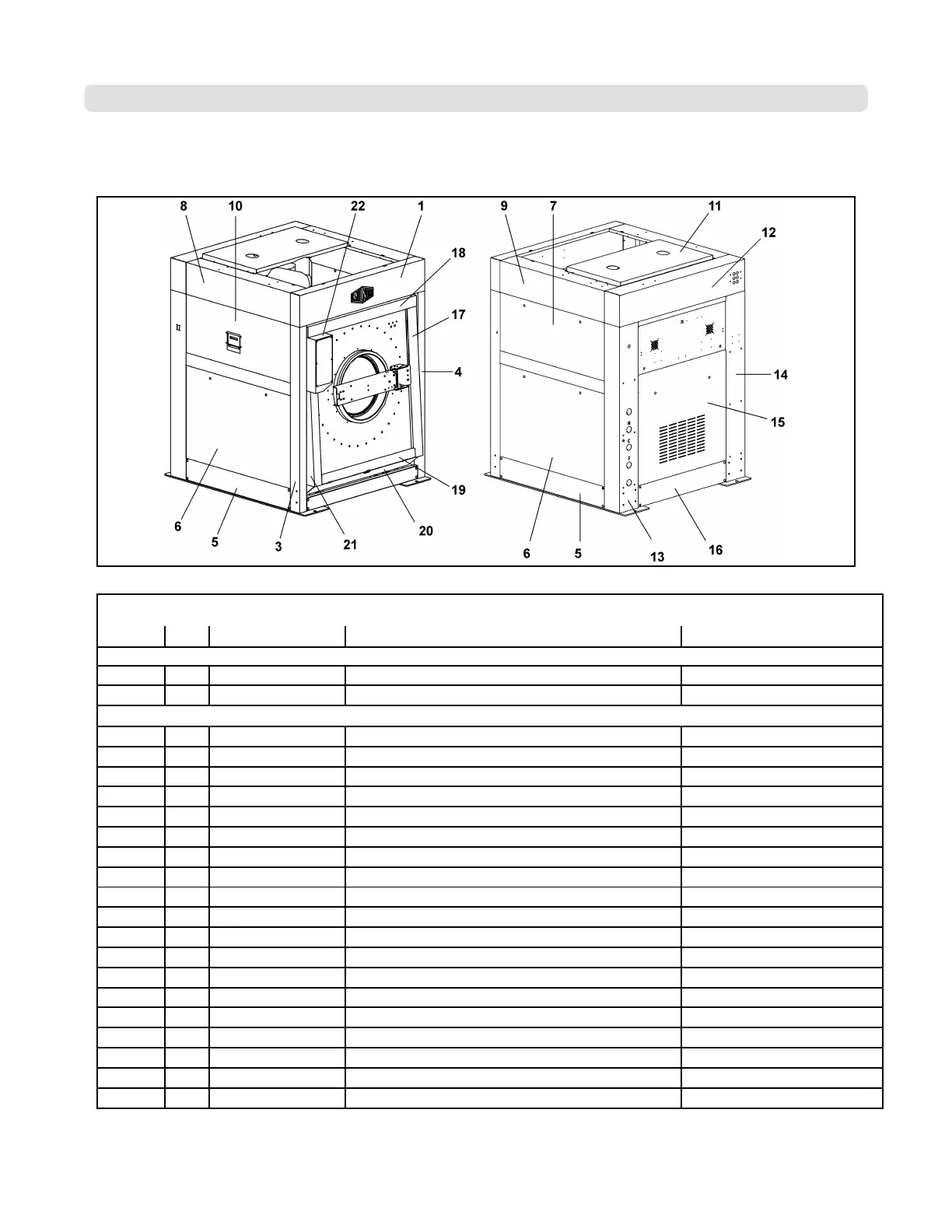 Find the assembly for your machine and the letter shown in the "Item" column. The components for your machine will show this let-
