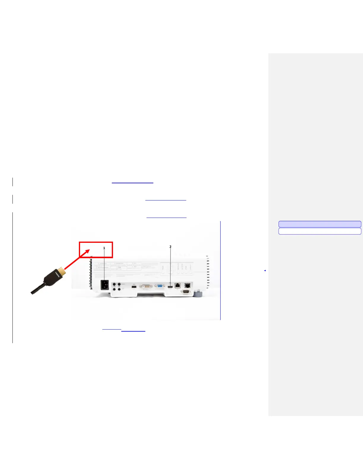 2. Connect power to the projector (Figure 1, Item 1). Make sure the cable does not interfere with the