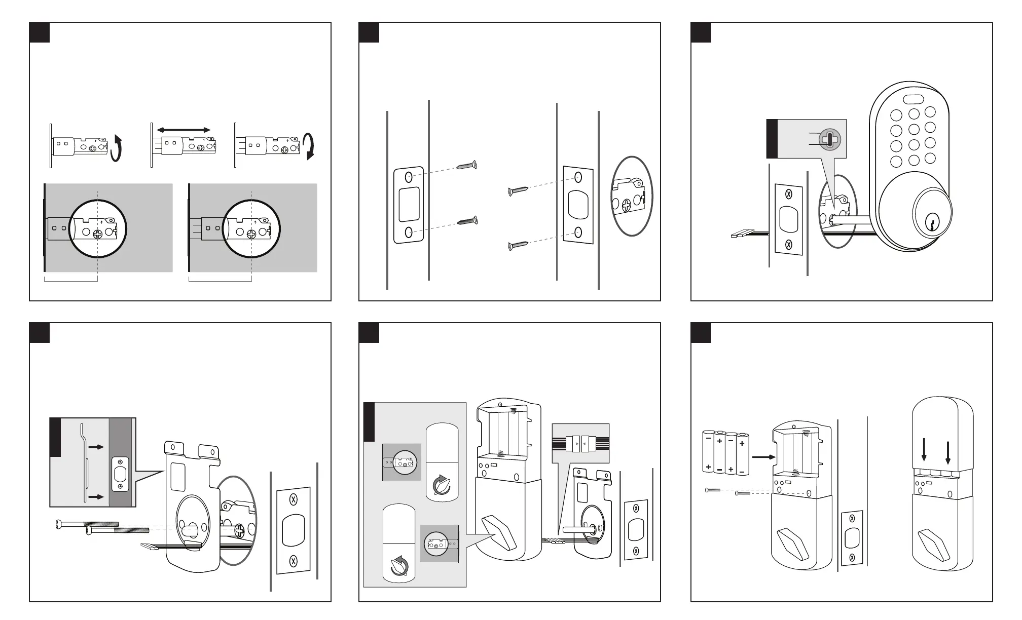 (1) Use Screws (F3) to secure Strike Plate (C) to door frame.