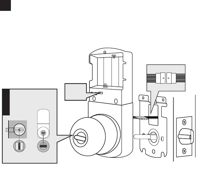 (!) Before continuing: Drive bar should be oriented vertically and thumb turn should be