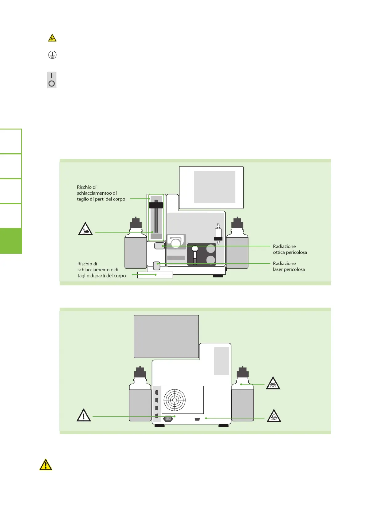 Rischio biologico. Rischio di contaminazione se è in uso materiale biologio potenzialmente pericoloso.