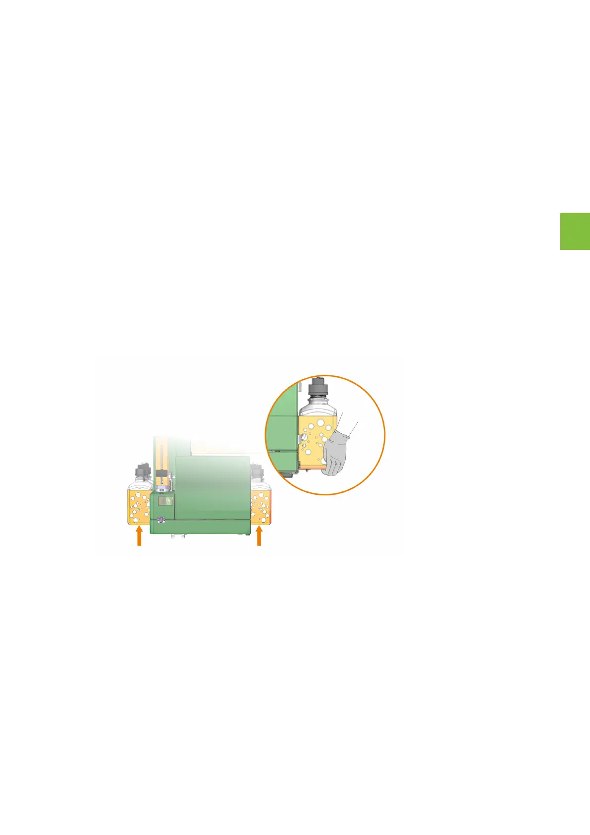 8 Lift the instrument by holding it at the base of the orange bottle holders at both sides of the device.