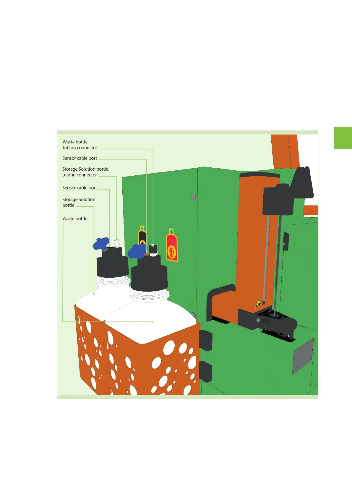 only. The bottles, closures, tubing and fluid sensor cables are color-coded for easier handling.