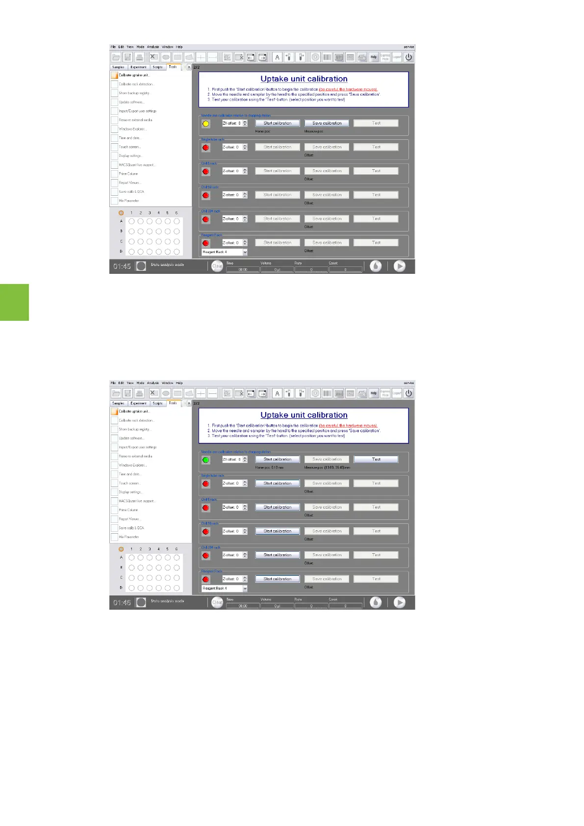 6 The closed green circle indicates that the calibration is completed. Click Test to confirm that the correct
