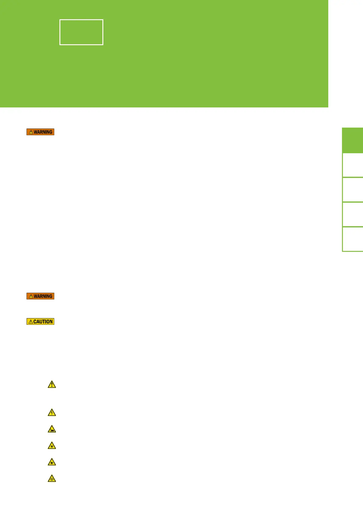 The following symbols are used to highlight conditions that could cause injury to personnel.