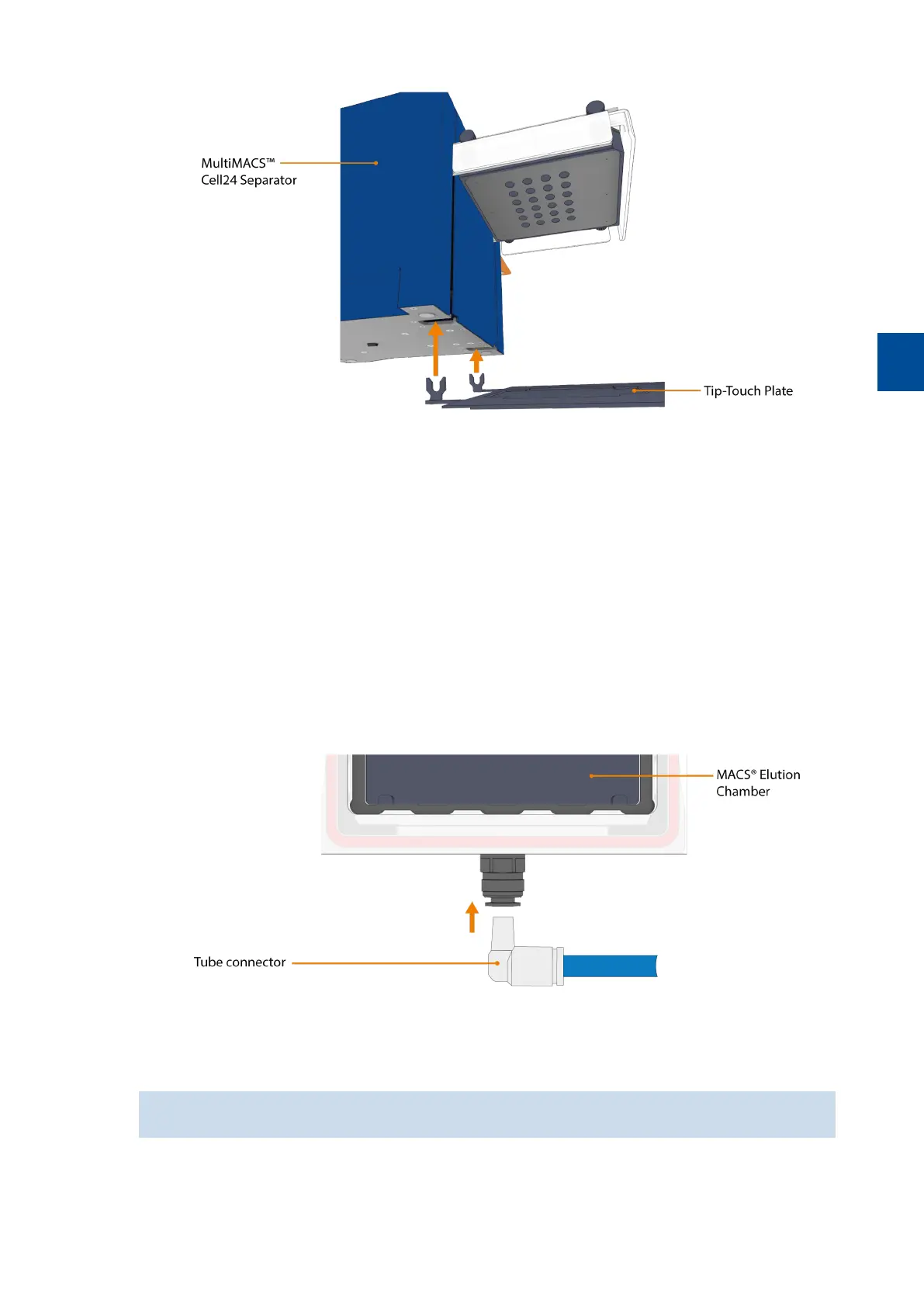 7 Connect the MACS Elution Chamber and the MACS Elution Station with the delivered tubing. The socket on
