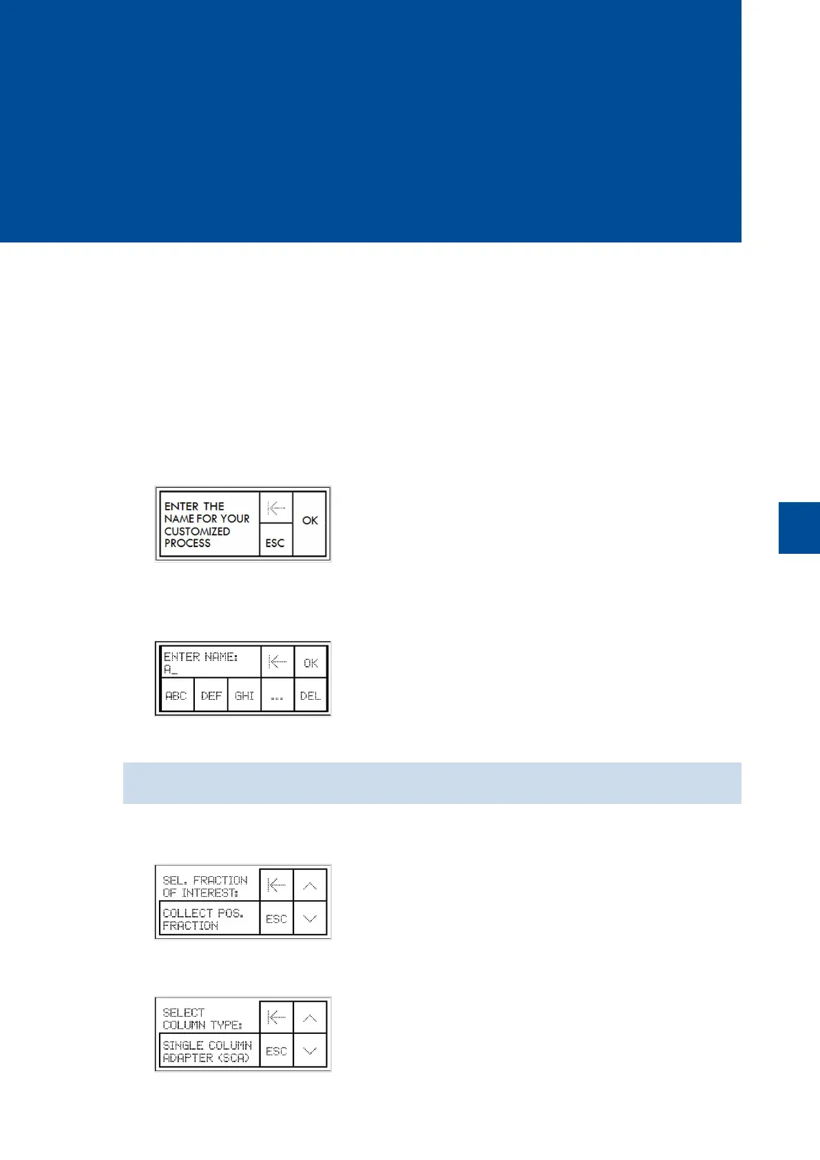 3 Enter a name for the new process. Up to 13 characters can be used. The letters are arranged in triplets. Tap