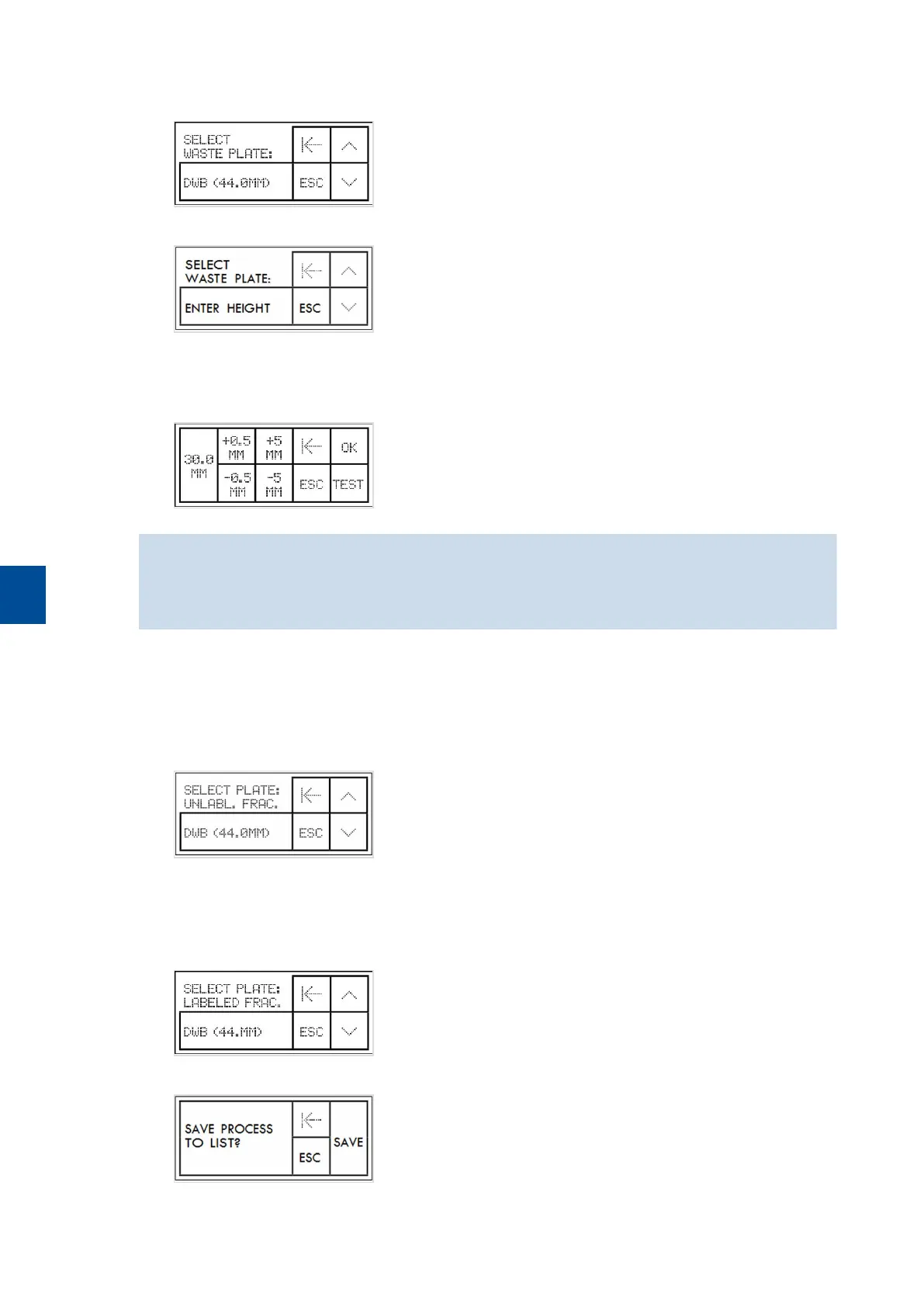 9 To adjust the plate height tap +0.5 MM or +5 MM to increase and -0.5 MM or -5 MM to decrease the