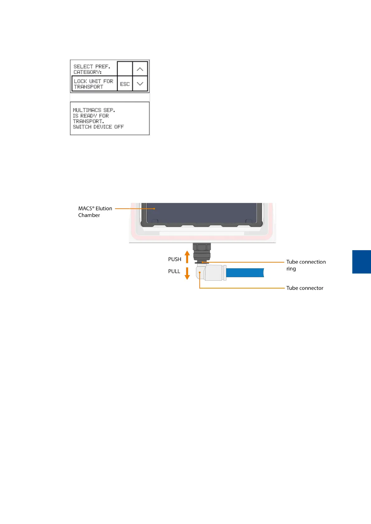 7 Disconnect the MACS Elution Chamber. Push the tube connection ring towards the MACS Elution Chamber