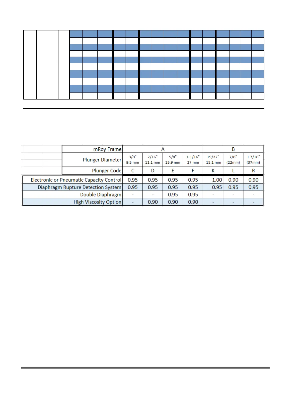 Figure 9. mRoy B Plastic Liquid End Capacity Tables