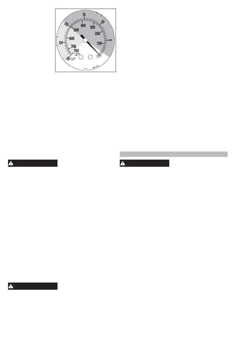 8. Quand le manomètre à vide affiche une lec-