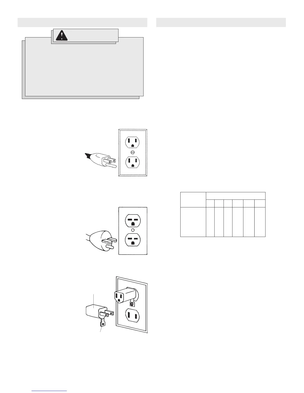 Reportez-vous au tableau ci-contre pour déterminer le calibre minimum