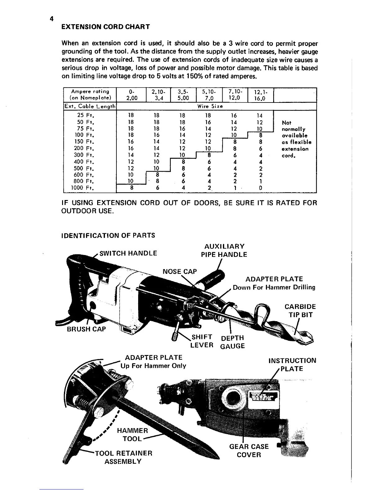Milwaukee 5300 - Extension Cord Chart; Identification of Parts