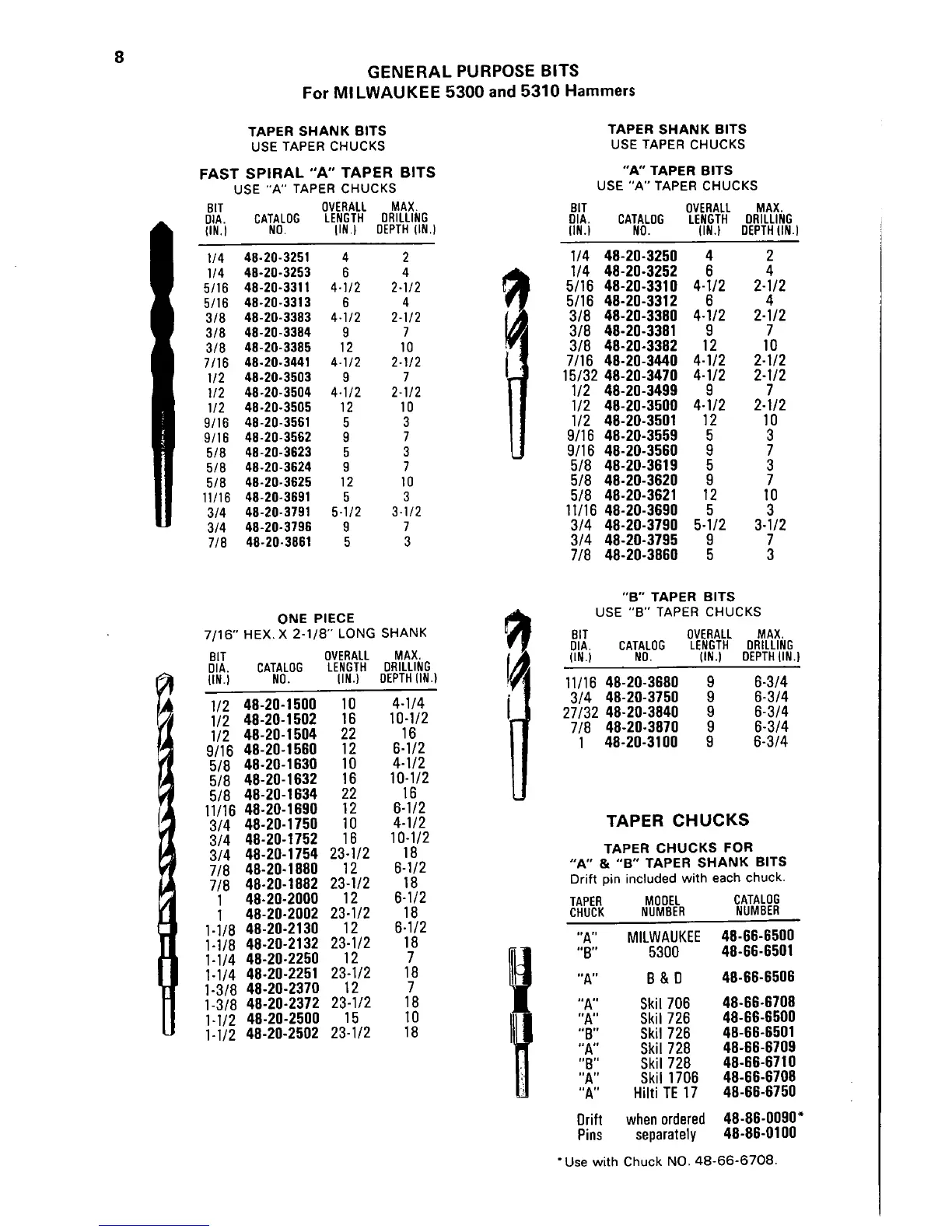 Milwaukee 5300 - General Purpose Bits and Chucks; Taper Shank Bits and Chucks