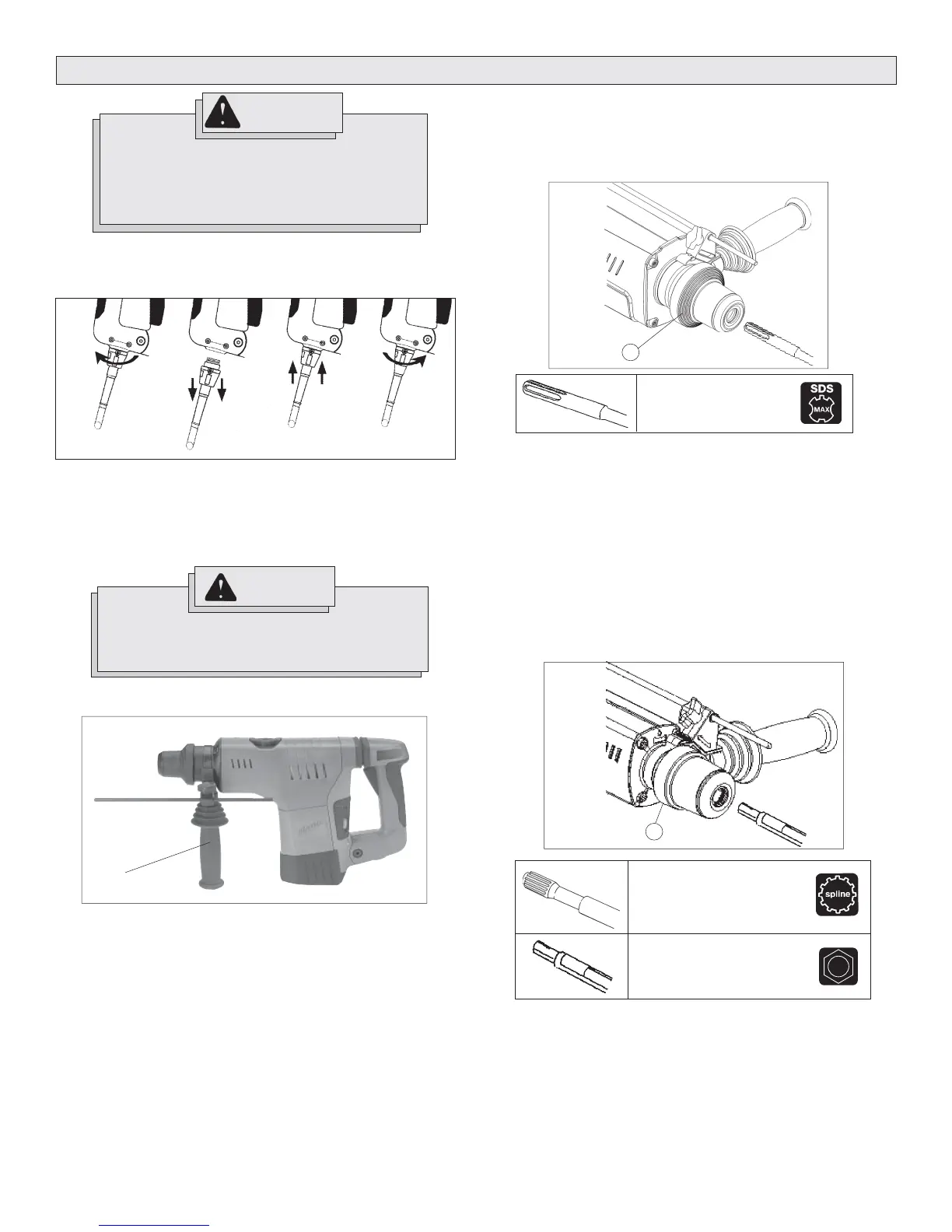 1. Insert the bit or chisel into the nose of the tool.