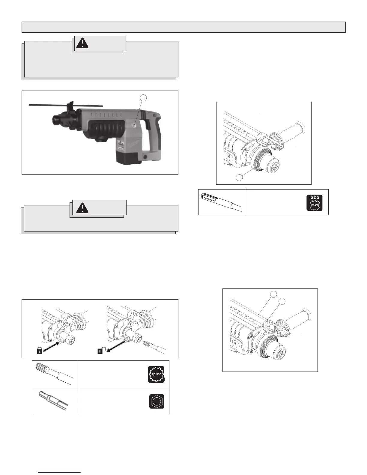 1. Insert the bit or chisel into the nose of the tool.
