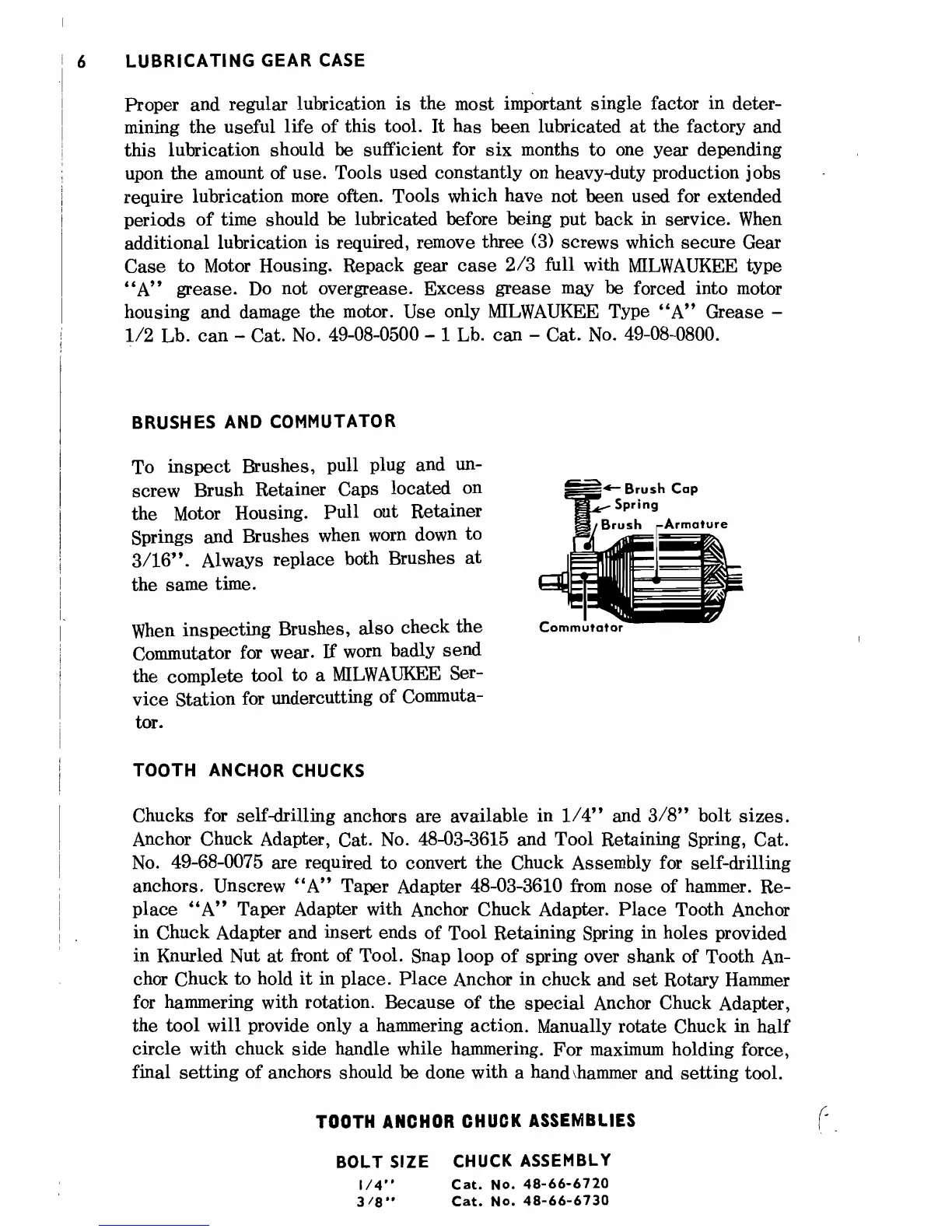 Milwaukee 5350 - Gear Case Lubrication; Brush and Commutator Inspection; Tooth Anchor Chucks