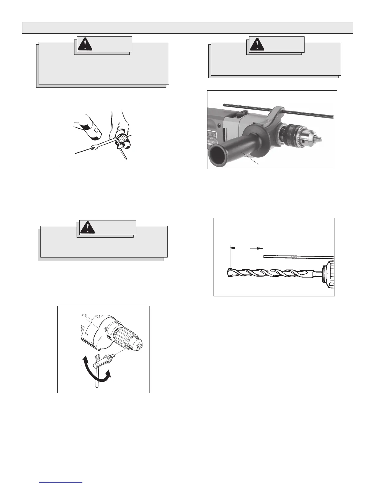 NOTE: Never use a wrench or means other than a chuck key to tighten