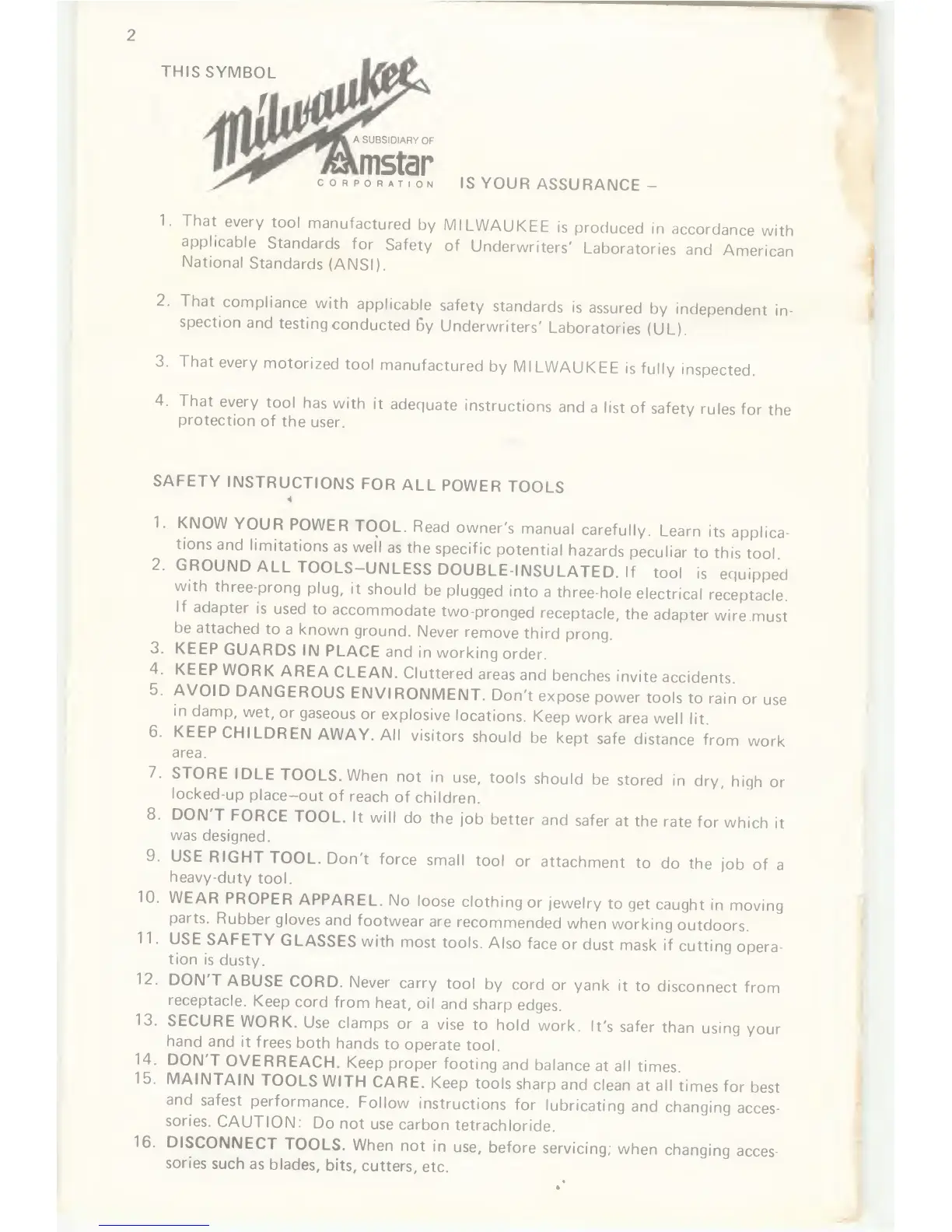 Milwaukee 5900-2 - Safety Instructions for All Power Tools